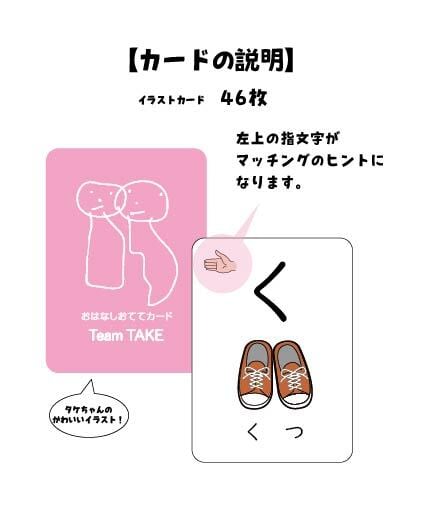 ●イラストカード(46枚):その音から始まる、身近な物のイラストが描かれたカードです。